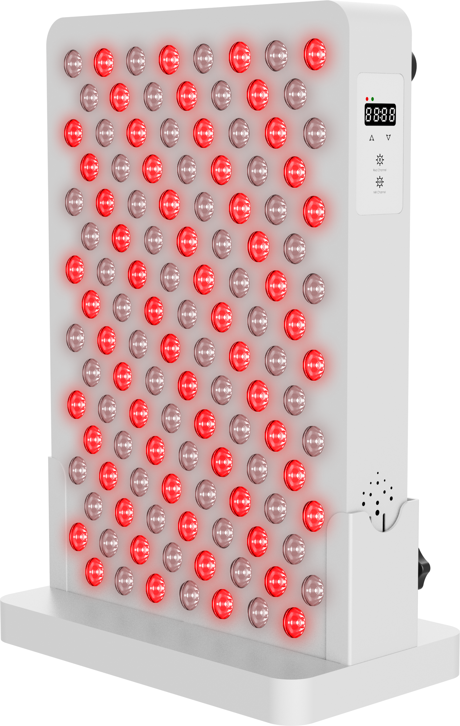 Answer 2: The panel emits 660nm red light and 850nm near-infrared wavelengths, which are scientifically proven to penetrate the skin effectively. Red light helps with skin rejuvenation, while near-infrared light enhances muscle recovery and reduces inflammation.